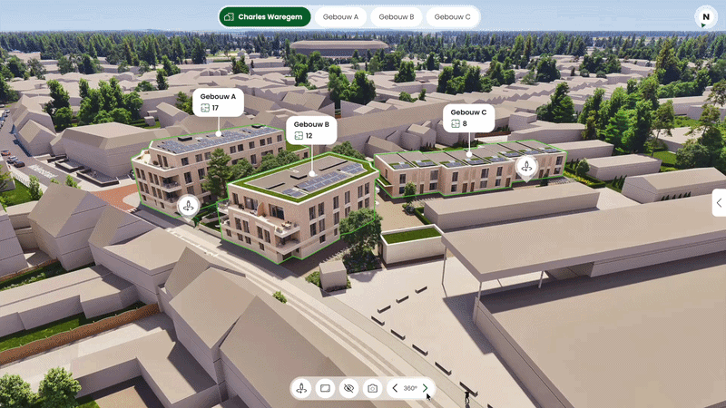 Verken je het volledige project in detail! Via de maquette klik je op elk gebouw naar keuze en krijg je per woning en appartement alle informatie: